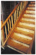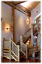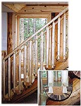 ![]() SR-100 Series Half-Log Treads, Full-Round Log Stringers Mortise-and-Tenon Balusters |