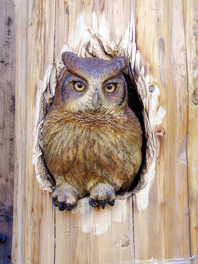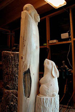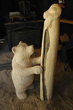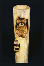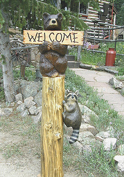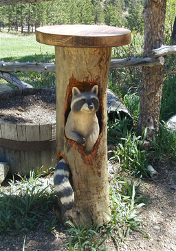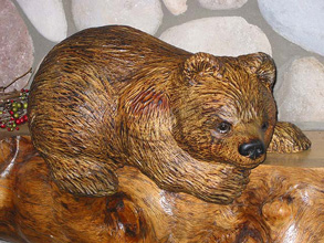 You can add that special touch by incorporating a custom carving into your log railing, stair or mantel. Our carvers can create your favorite animal - from cuddly raccoons, inquisitive bear cubs, bunny rabbits, or your cherished family pet. . ...........